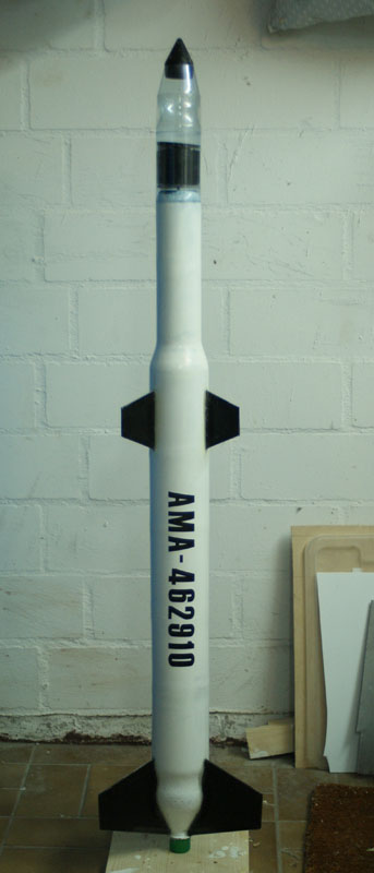 Irgendwie zieht es mich immer wieder zu weißen Raketen mit schwarzen Leitwerken. Ob das wohl an dem noch halb vollen Eimer Lack und dem aktuellen Vorrat an schwarzen Platten liegt
