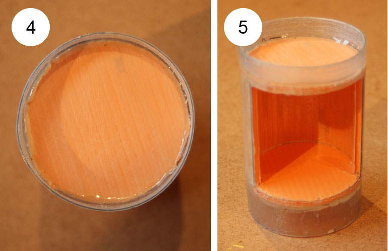 (4) Im nächsten Schritt habe ich einen Boden und einen Deckel aus PP-Platte eingeklebt (Heißkleber)