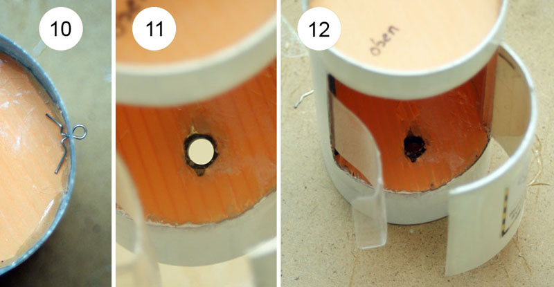 (10) Hier ist die Öse zu sehen, an der später das Gummi zum Schließen der Tür befestigt wird.