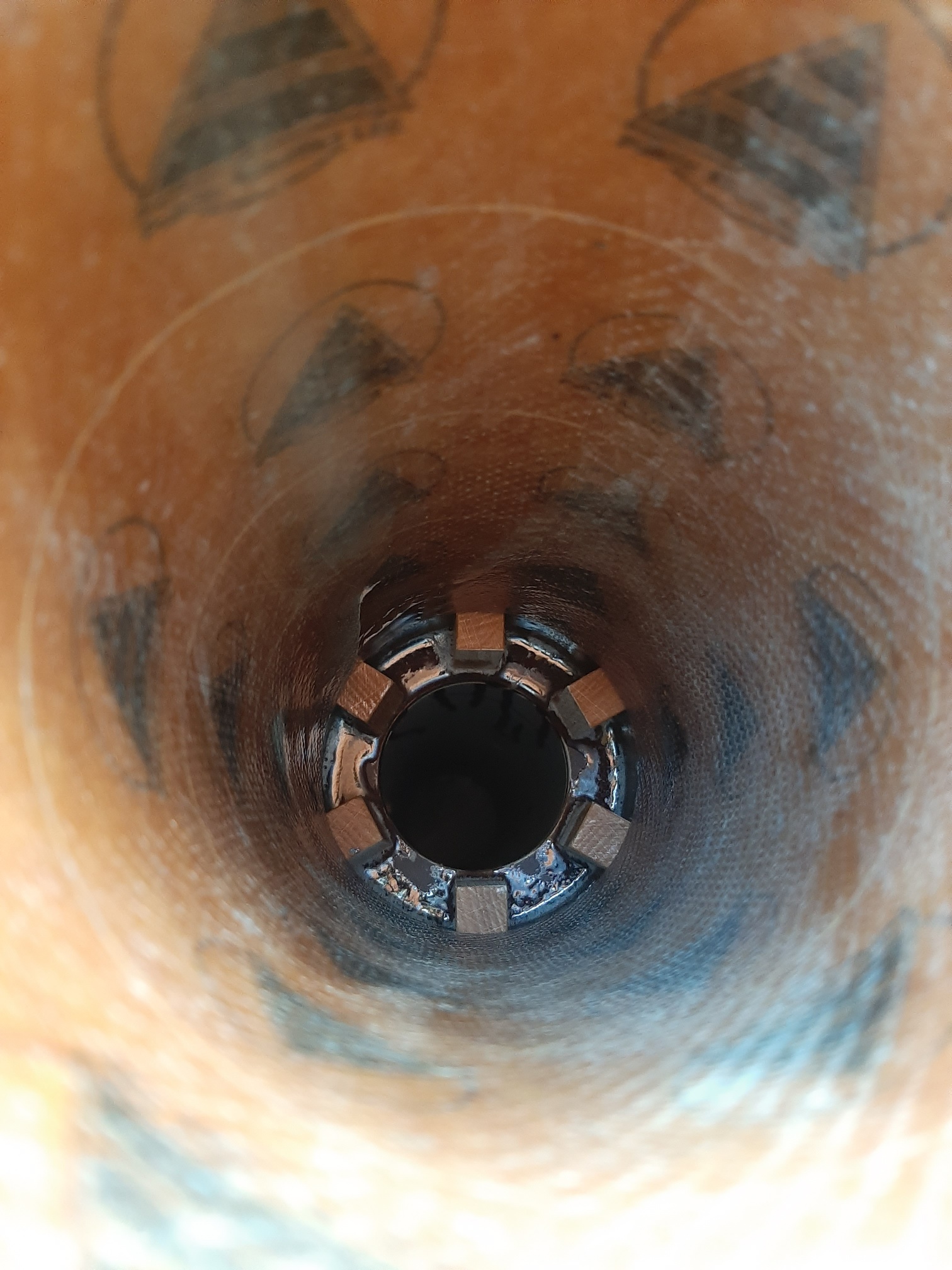 so sitzt der verstärkte PML-Kuppler des Mittelrohrs auf den Klötzchen im Körperrohr des Boosters auf...