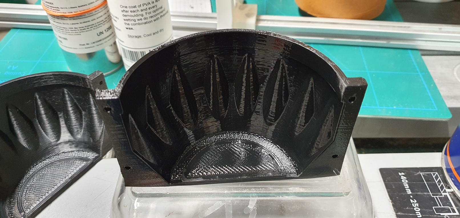 Die Form habe ich aus ABS gedruckt. Ich schleife die Form grob über: Dann nach einer schönen Aceton Dusche: Kommt erst Trennwaschs dann Folientrennmittel: