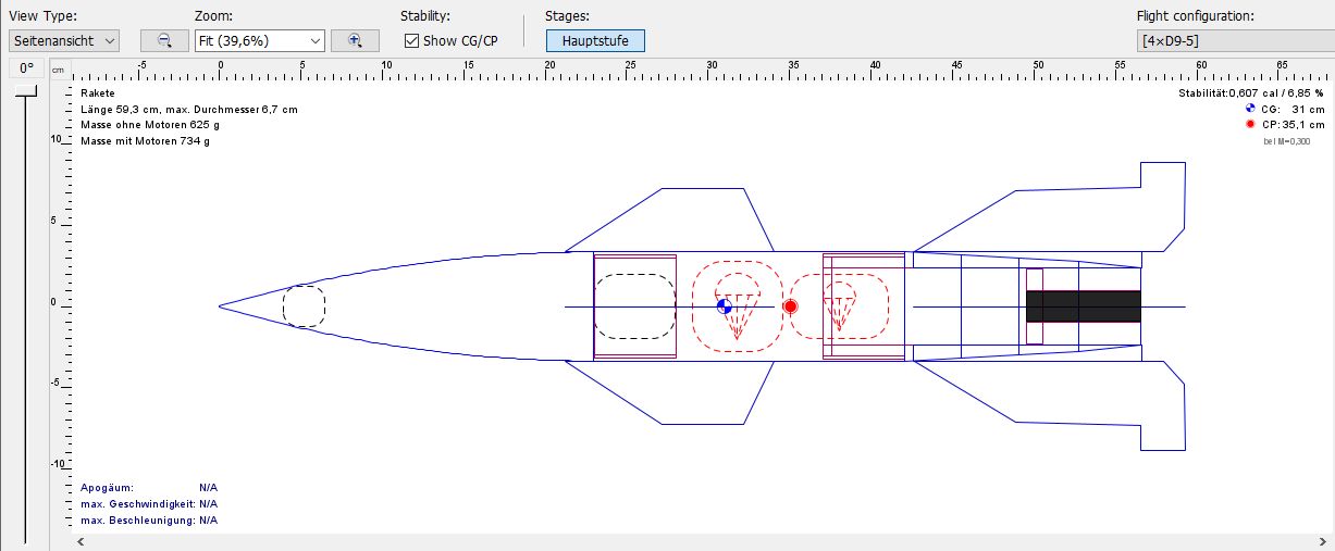 Hier der Schnappschuss aus OpenRocket:
