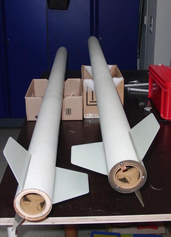 Sie bestehen aus verglastem PML-Rohr (2 Lagen 80g), eine GFK-Spitze und GFK-Fins.