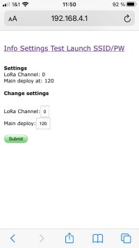 Die Bedienung lässt sich also sozusagen von den nicht sehr komfortablen traditionellen Bedienelementen Jumper / Summer auf WiFi mit dem allgegenwärtigen Smartphone umstellen. Hier mal ein Teil des Menüs zur Einstellung von LoRa-Kanal und Auslösung des Main: