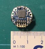 Der hat ca. 14 mm im Durchmesser und die Anschlüsse sind etwas exotisch, weil er für Wearables gedacht ist, aber das bekommt man hin. Der Prozessor ist ein ATMega328P. Den habe ich schon mal in einem WaRa-Altimeter eingesetzt.