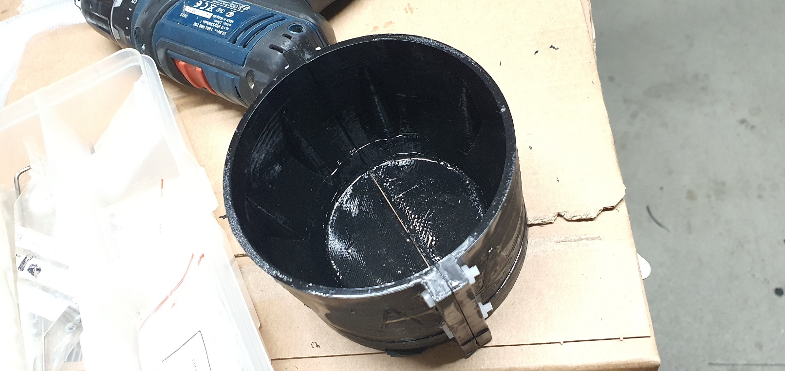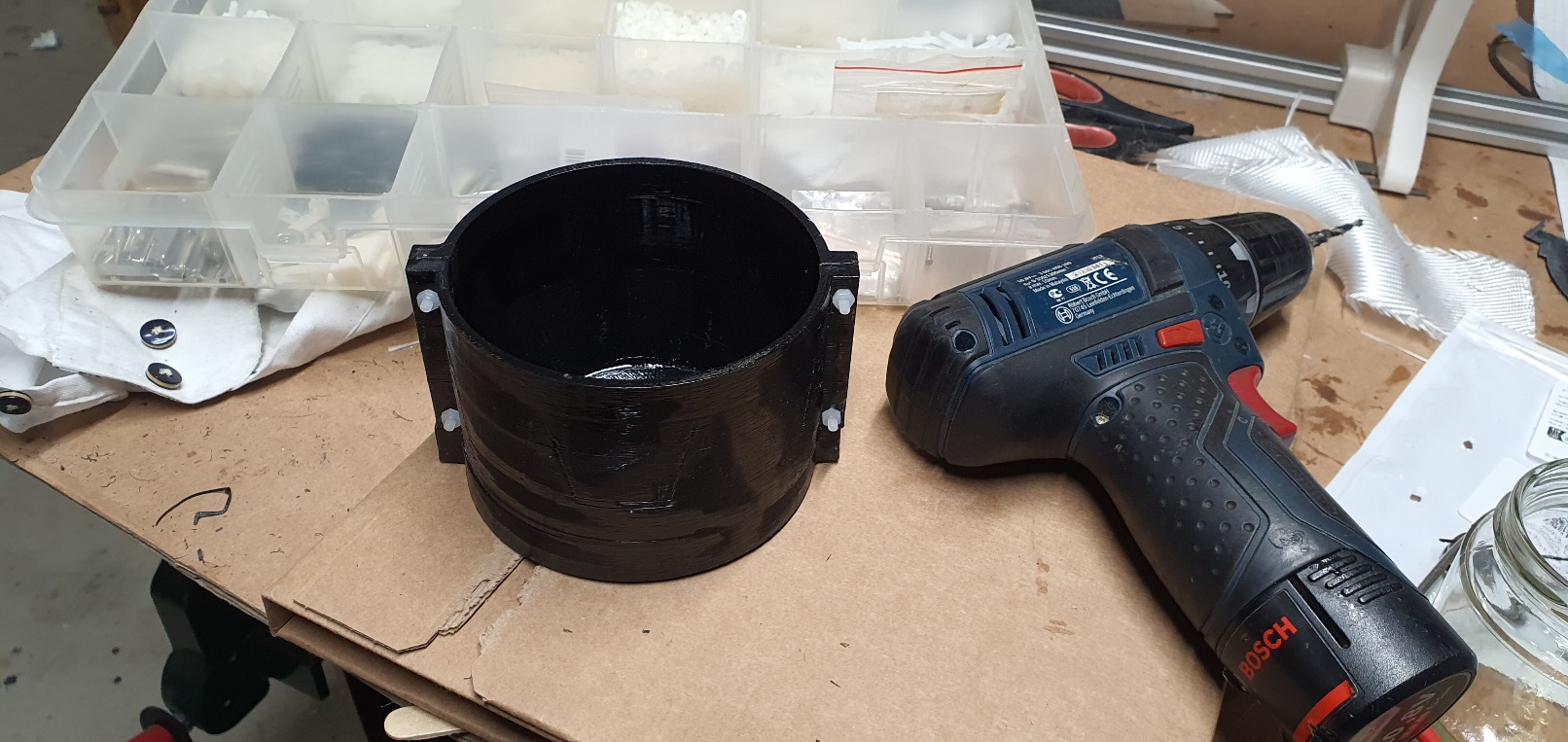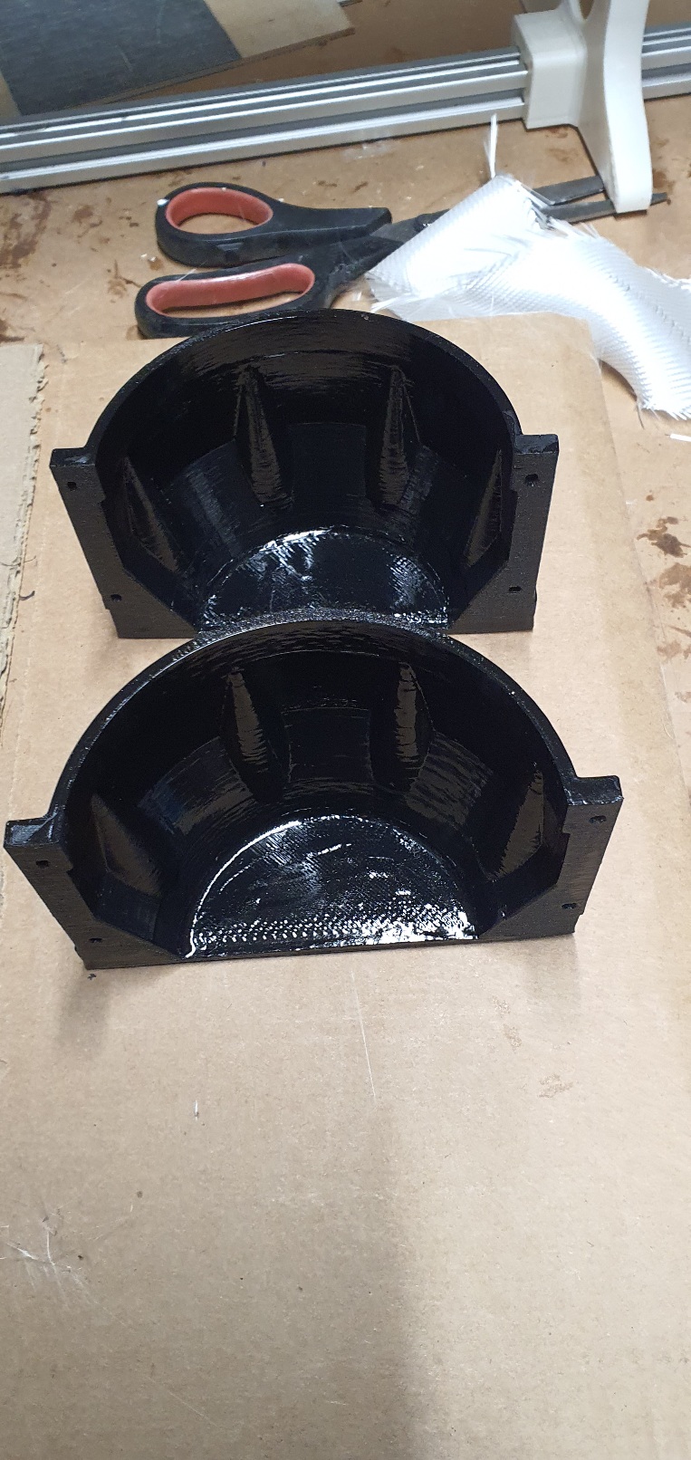 Die Form ist definitiv nicht die beste. Ich hab gerad keine Lust die 0,8mm Düse im Drucker zu tauschen. Das Teil ist auf jeden Fall stark belastet. Darauf landet die komplette Rakete. Die Hinterschneidung / Entformen ist nicht das Problem. Mein Problem ist, dass sich das Gewebe nicht sauber an die Oberfläche gepresst hat und somit die Form nicht zu gebrauchen war. Den Pott, der auf dem Modell steckt habe ich schon in paar Mal gespachtelt. Hoffentlich klappt das besser, wenn da weniger von den Knubbeln drin sind. Eine dünnere Folie könnte auch helfen das besser an zu pressen. Gruß Ralf