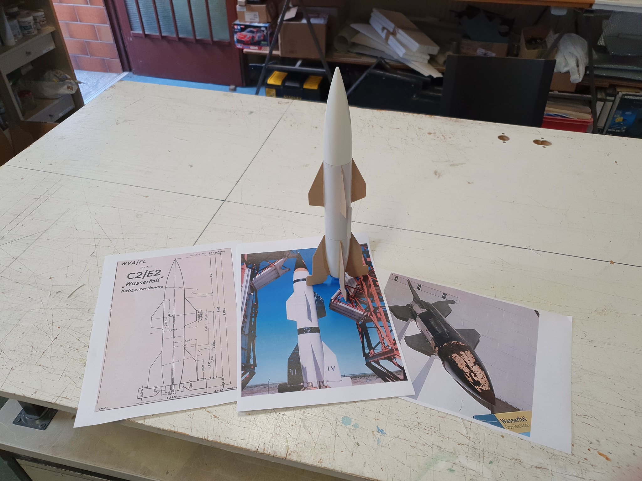 Ich habe meine kleine Wasserfall der Hermes Rakete nachempfunden, die hat allerdings wenn mans ganz ganz genau nimmt schmalere obere Leitflossen:
