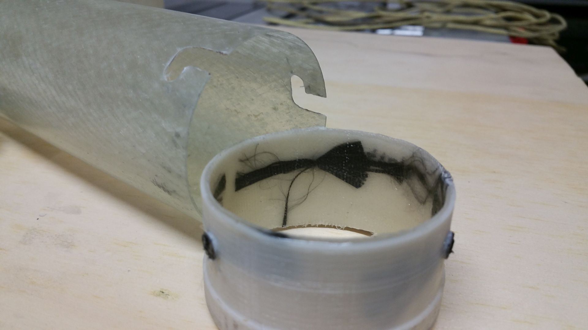 In den Bulkhead der Ebay ist jetzt eine Verstärkung aus 6mm Buchensperrholz eingebracht worden und das ganze Assemble hoffentlich wasserdicht verklebt.