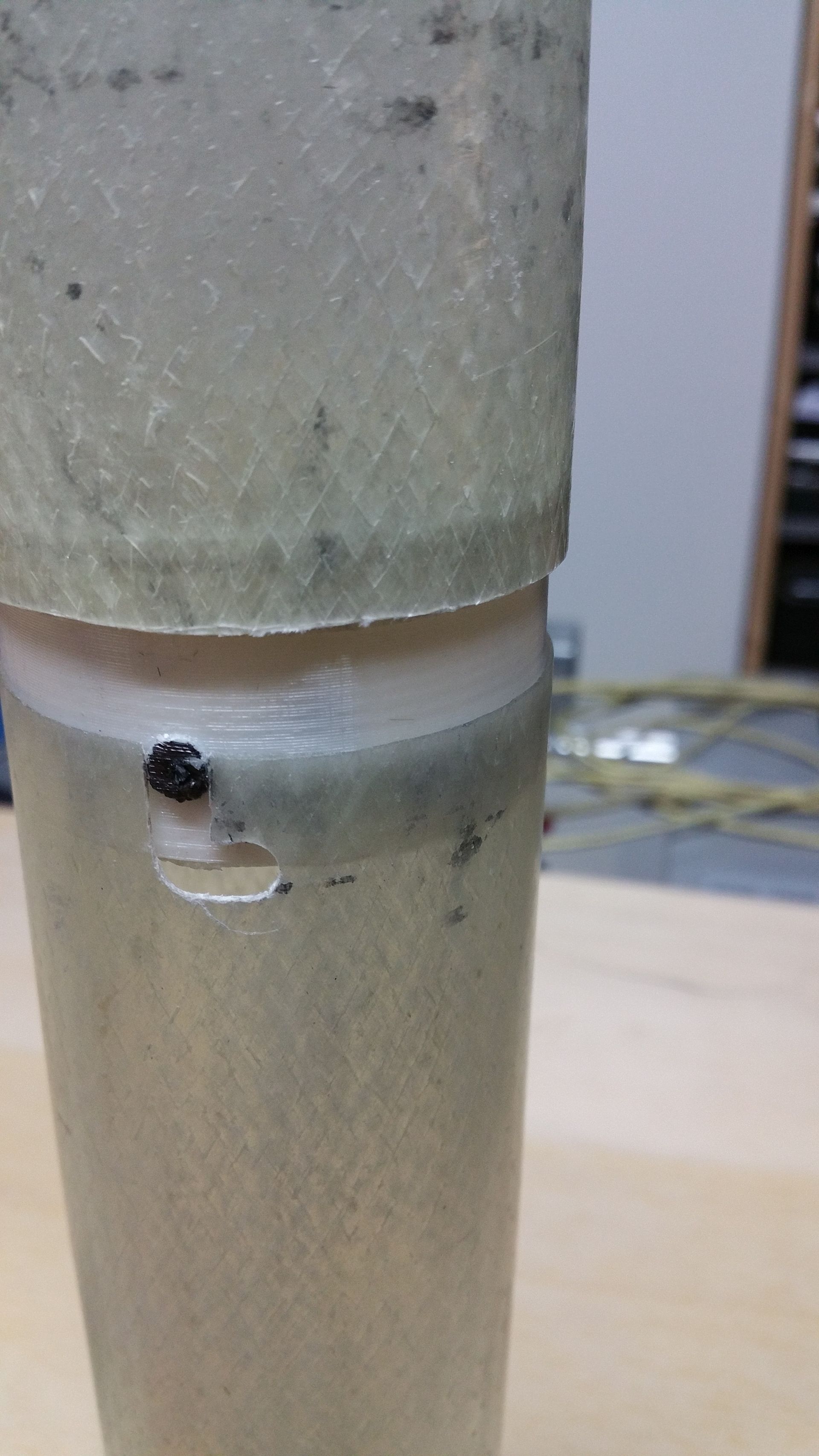 Für die Befestigung des Kupplers im oberen Körperrohr habe ich wieder einen Bajonettverschluss gewählt. Das Kunststoffteil hat drei Nocken, die in die Aussparungen im Kuppler greifen. Das Teil wird ins Körperrohr geklebt und wird den Kuppler an der entsprechenden Stelle fixieren. Damit habe ich keine Schraubenverbindungen und komme dem Ziel "Wasserdicht" ein stück näher.