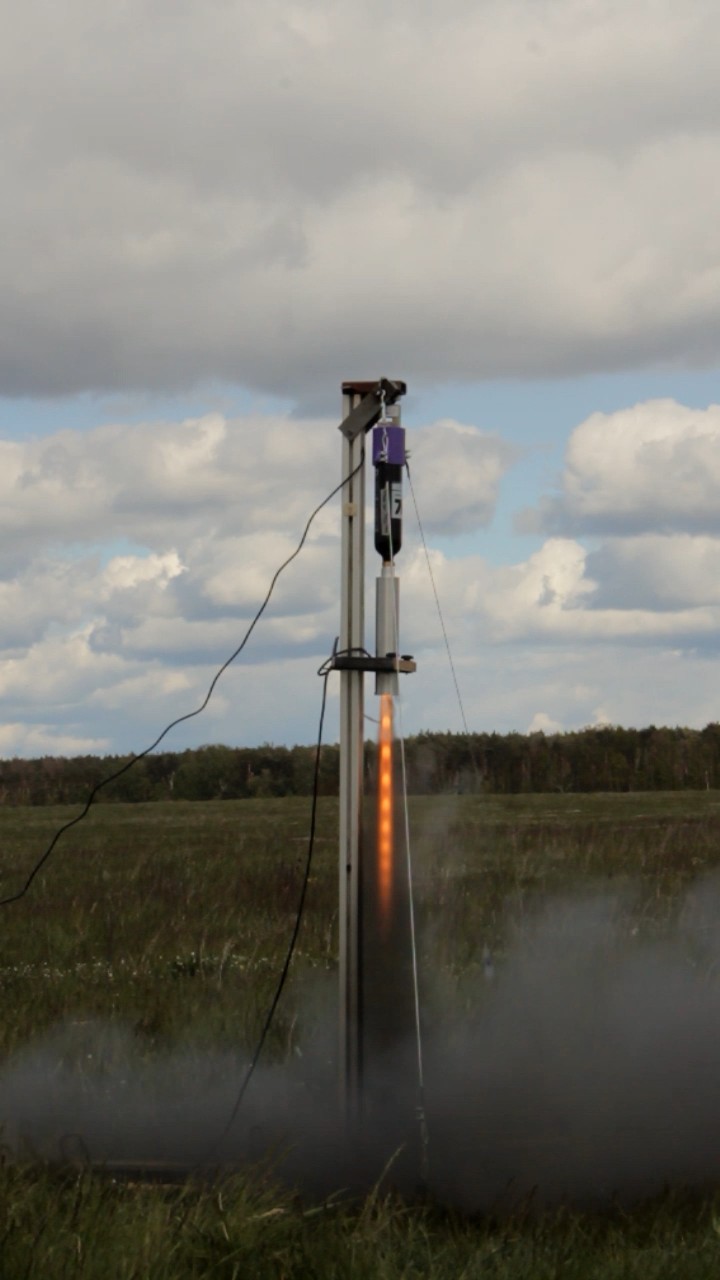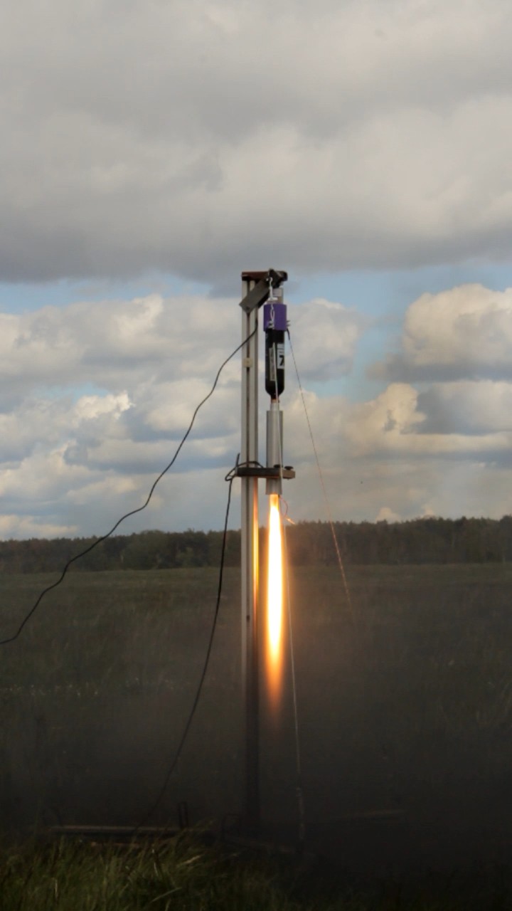 1. Test: kleiner Tank mit 340g N2O 2. Test: mittlerer Tank mit 450g N2O Zum Motor kann ich bald in einem eigenen Thread noch mehr schreiben, für's erste ein kurzer Abriss in wenigen Punkten: - 54mm Brennkammer mit 205mm langem Brennstoffblock aus gedrucktem ABS - Pyroventil nach AlphaHybrids Vorbild, aber mit ein paar Optimierungen - Anschluss für Paintball Pin-Ventile, dadurch verschiedene Tanks möglich Am Samstag ist der Motor zweimal gelaufen und hat ziemlich genau das gemacht, was ich berechnet hatte. Das Brennstoff-Oxidator-Verhältnis hat im Allgemeinen gut gepasst und der Isp von fast 200 spricht auch für eine effiziente Verbrennung, aber da sind noch ein paar Ns auf der Strecke geblieben die ich gerne noch mitnehmen würde Hier ein paar Bilder aus den Videos: Kurz nach der Zündung, noch fehlt ein wenig Sprit... Jetzt ist er richtig! Grain nach dem Abbrand. Mit dem größeren Tank waren es dann ~1050Ns, für den RJD möchte ich noch auf einen anderen Tank wechseln (10% mehr Inhalt, aber weniger Gewicht). Schubkurven kommen noch, aber das dann vielleicht schon separat. 'Technisch gesehen hat alles funktioniert!' -Ich (oft kopiert) |