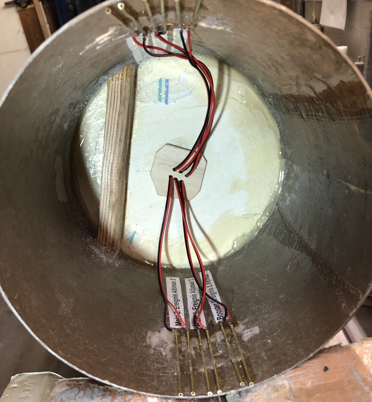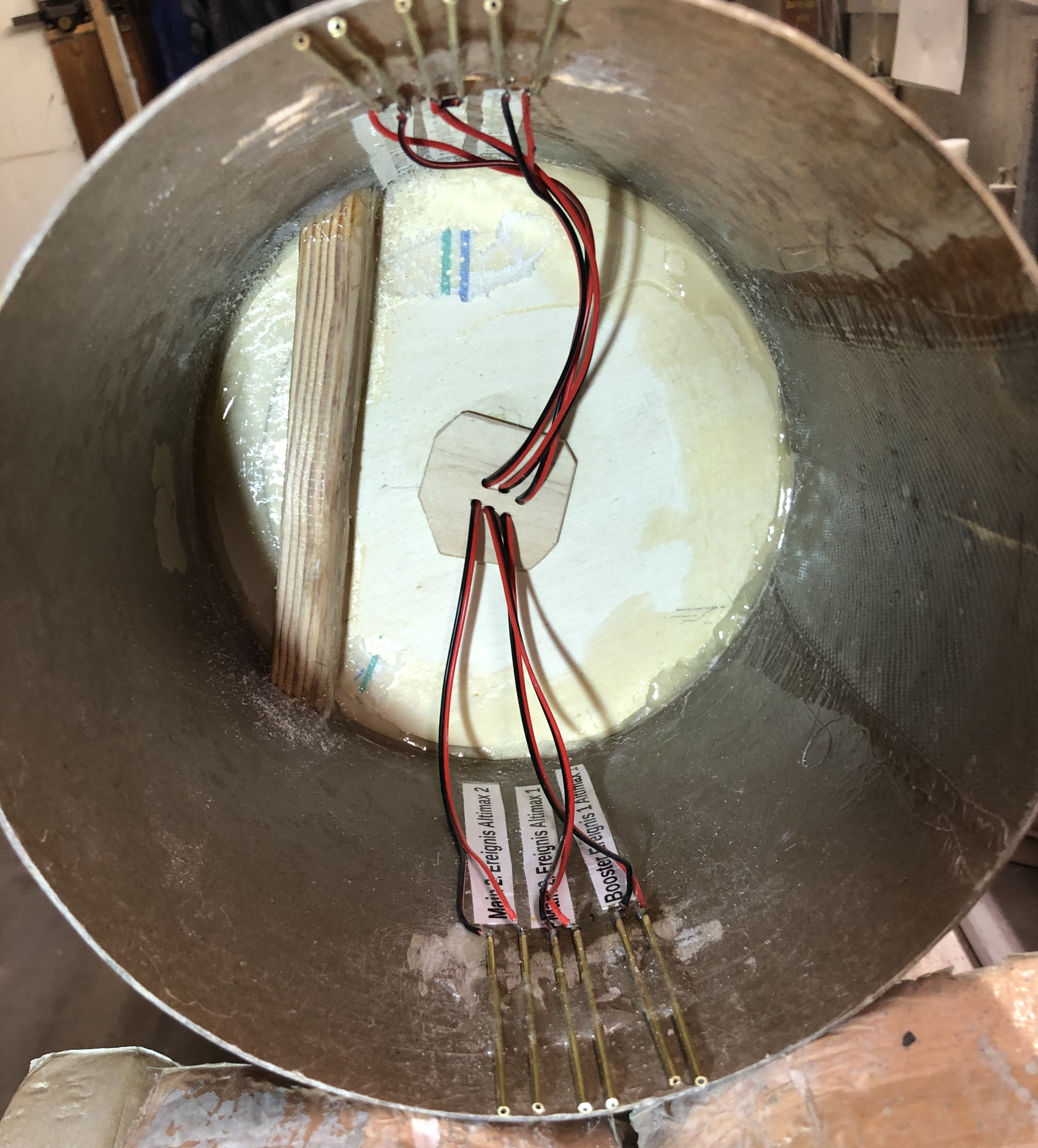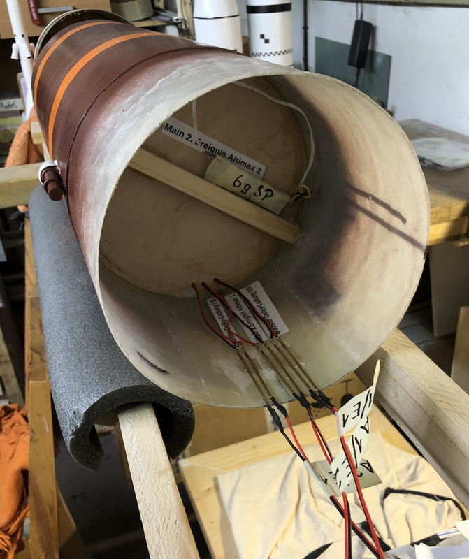 Im Innern der Main-Tube wird dann weiter verlegt bis zur Kupplung der Oberstufe, wo sich die Messingröhrchen befinden.