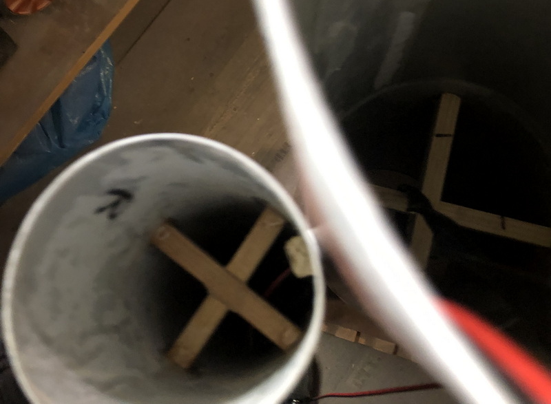 Im Innern der Rohre habe ich noch ein "Rückhaltekreuz montiert, damit beim Start durch die Schwerkraft nicht die Fallschirmpakete bis nach unten rutschen.
