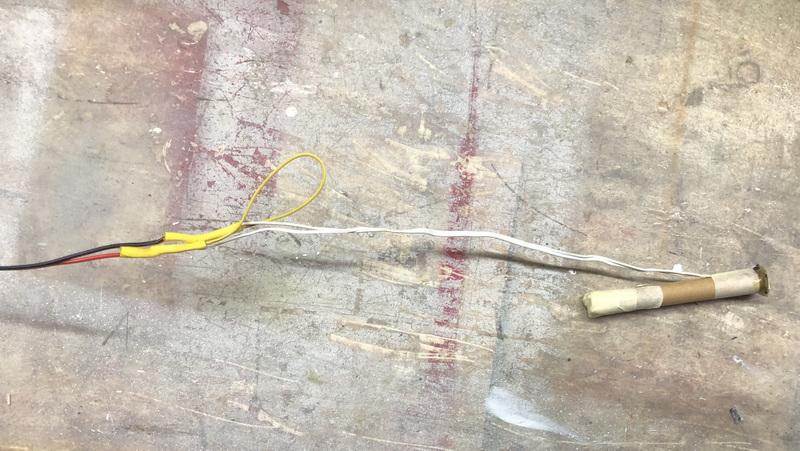 Um die elektrische Verkabelung zu den Ausstoßladungen zu installieren, musste ich mir eine Art Laffette bauen, um die Raketenteile hintereinander ablegen zu können.