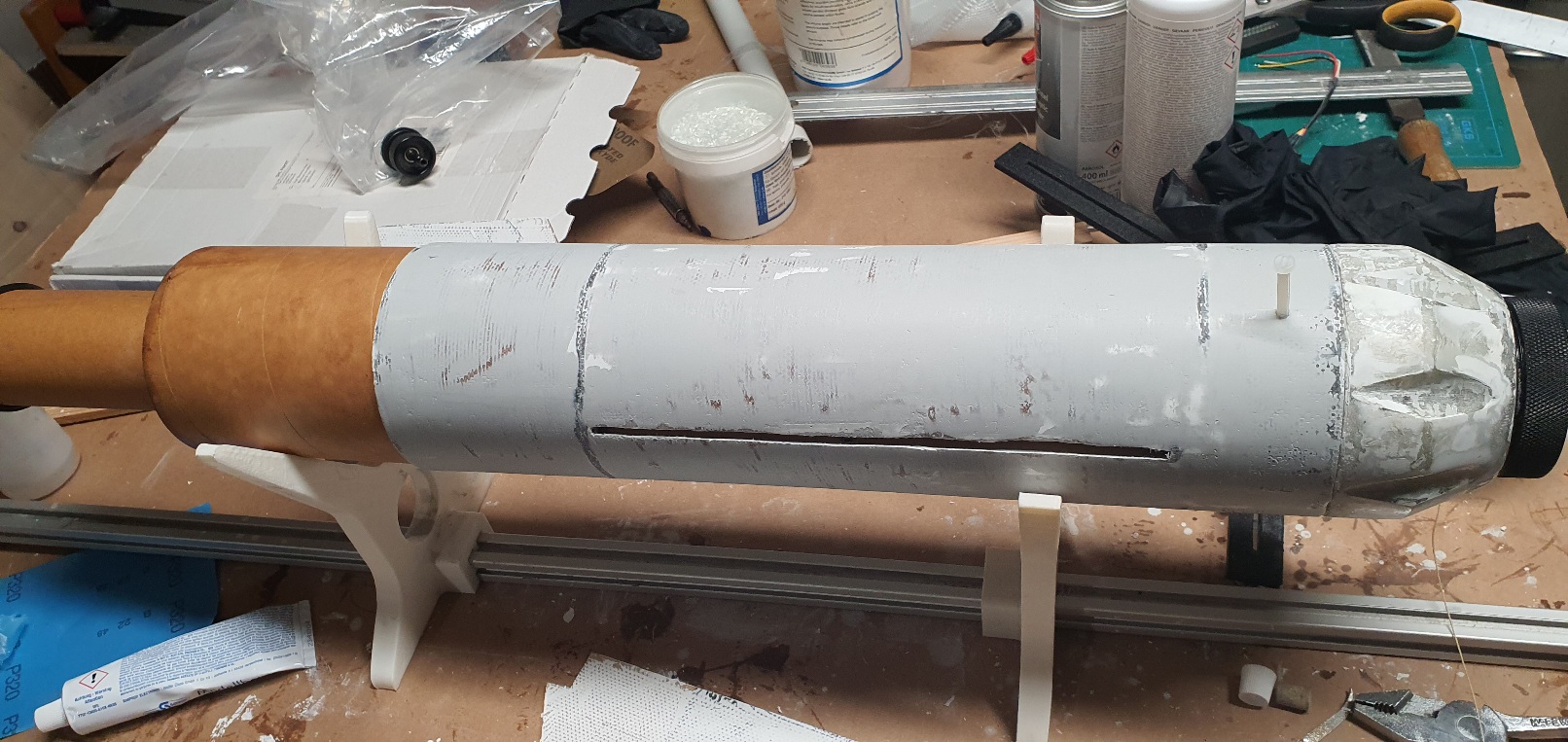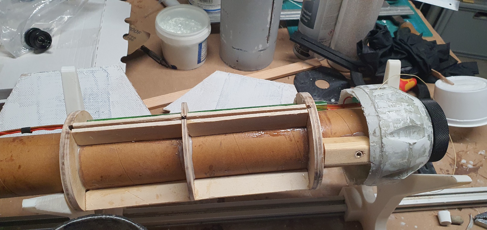Ich muss noch den Kuppler verstärken und die Rohre schleifen, dann kann ich das Modell zusammen kleben.