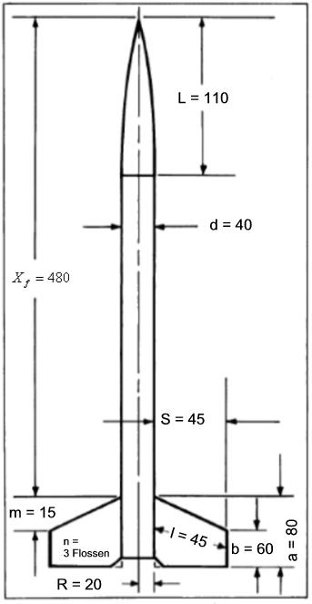 Nun muss ich nur noch möglichst genau den cw Wert wissen, und Peter hat ja mal das angebot gemacht, das er diesen aus der Salt datei und den Abmessungen zurückrechnen könnte. Ich muss nur wissen welche Abmessungen das sind. Unten häng ich mal die an, die für die Druckpunktbestimmung nach Barrowman nötig sind, da ist bestimmt das wichtigste dabei.