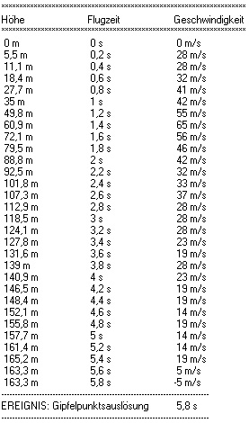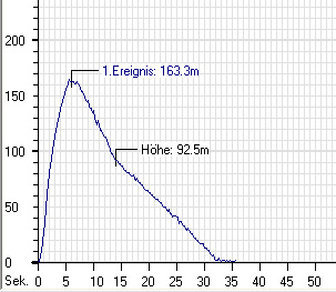 Ich hab vorher mehrere Testflüge gemacht um auszuprobieren, ob ich den Fallschirm besser im oberen oder unteren Rohr platzieren sollte. Dabei hat sich herausgestellt, das wenn ich den Fallschirm in das untere Rohre packe dieser sofort beim Motorausstoß raus kommt. Hierbei ist die Rakete verhältnissmässig weit abgetrieben. Wenn ich den Fallschirm ins obere Rohr schiebe, dauert es nach Trennung der Rakete eine Zeit bis dieser durch das untere Rohr hinausgezogen wird. dadurch geht der Fallschirm erst weit nach dem Gipfelpunkt auf und Treibt nicht so weit ab. Hab also eine Zwei-Stufenbergung, erst Taumelbergung, dann Fallschirm wink