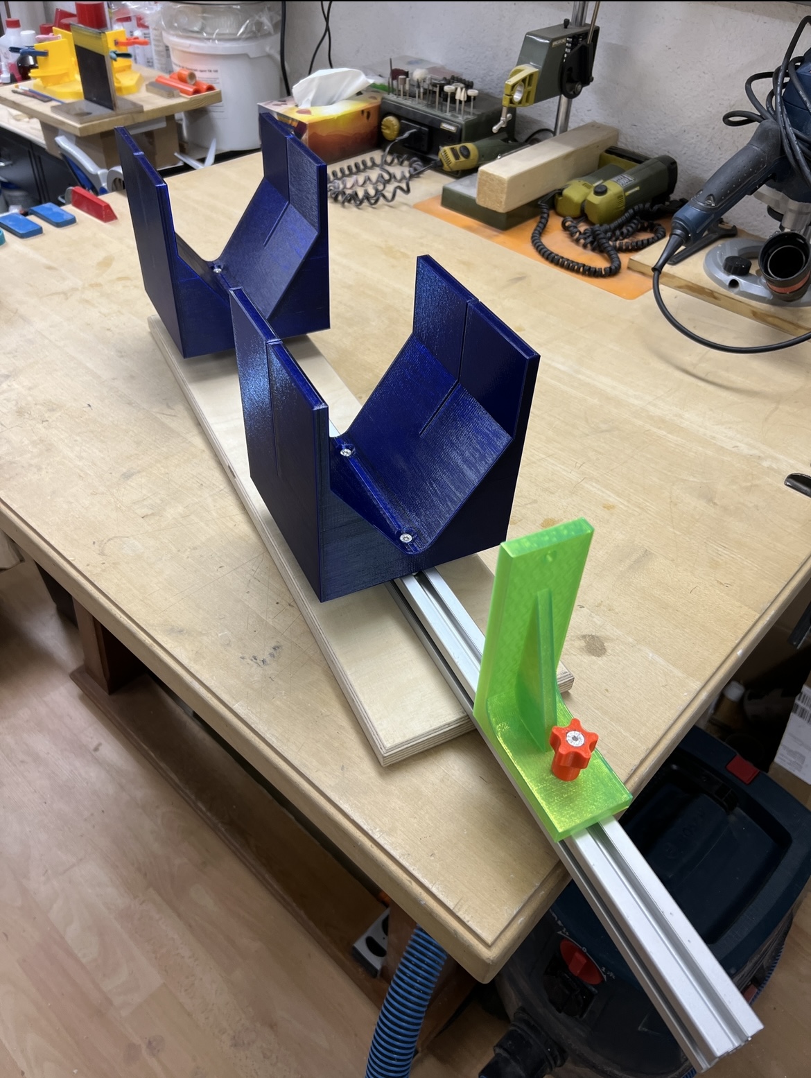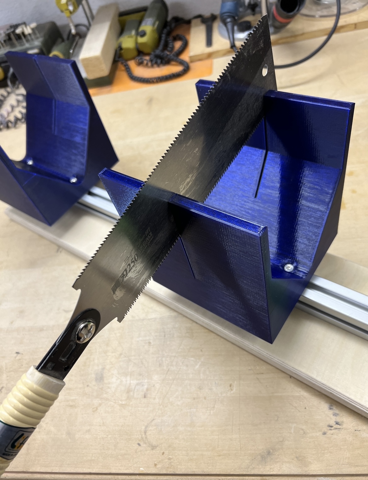 Über diverse Konzepte bis hin zu Trennscheibe mit automatischer Drehvorichtung Hat mich dann Ralf B wieder ein wenig auf den Boden geholt mit einem tollen tip > Japan Zugsäge … Da ich mich aber nicht 100prozent auf Papierring und meine Frei hand Skills verlassen wollte hab ich mich nochmal vors leere Blatt gesetzt … jetzt ist das Design deutlich einfacher geworden und trotzdem vielversprechend :-) Ich habe meine zweite Lieblingssäge mit 0,8er Blatt rausgesucht (mein Lieblingssäge mit 0,2er Blatt hat leider den Abflug gemacht und ist Blatt voraus auf der Kappsäge eingeschlagen, zudem hat sie noch eine Stegfassung …. War also keine Option) und eine simple Schnittführung gezeichnet… Diese mal zwei montiert auf einer Schiene und ergänzt mit einem Anschlag hilft nun Schnitte in ausreichender Genauigkeit zu setzen… Hier mal ein paar Impressionen: Sollte man nur sehr wenig ablängen müssen habe ich noch eine Anschlags Erweiterung gemacht … Erste Tests waren sehr viel versprechend. Ich muss sagen ich bin begeistert und es klappt besser als ich es mir ausgemalt hatte. Anfangs eine leichte Einritzung über Drehung gegen den Anschlag und dann sauber ohne Druck durch … Beide Schnittkanten aufeinander .. Saubere und winkelige Schnittkante … Viele Grüße Marco |