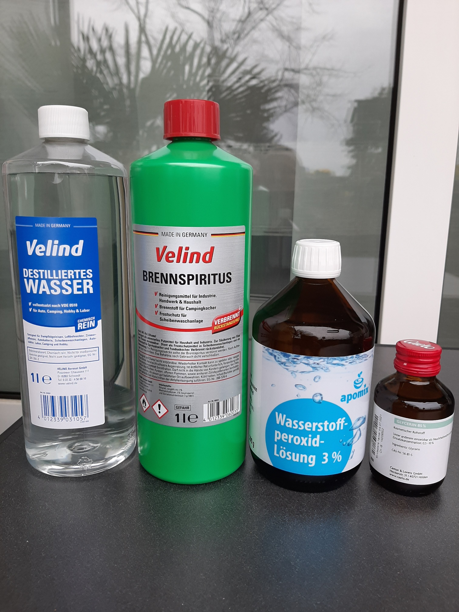 45 ml 3% Wasserstoffperoxidlösung, erledigt den Rest der besonders hartnäckigen Viren,