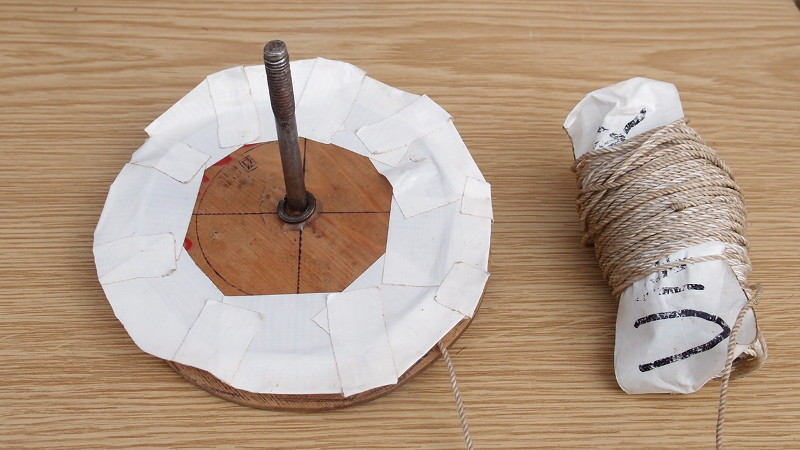 Durch das zentrale Loch in der Startrampe wird von unten eine M8-Schraube geschoben. Sie hält die Rakete bis zum Start am Boden. Um die Schraube zum Start schnell und ohne viel Kraft aufdrehen zu können ist am Schraubenkopf ein hölzernes Riemenrad befestigt, dessen Durchmesser etwas kleiner ist als der Abstand zwischen den Launch Tubes. Auf das Riemenrad wird eine stabile Polyamid-Schnur aufgewickelt. Wenn man aus großer Entfernung beherzt an ihr zieht wird in einem Sekundenbruchteil die Schraube aufgedreht, sodass die Startkupplung entriegelt wird (High Performance Remote Unlock System oder HPRUS). Mit dieser Technik habe ich seit 2004 viele zwei- und vierstrahlige Cluster erfolgreich gestartet. Die Mutter zur Schraube ist Teil der Rakete und fliegt mit (siehe Teil 2).